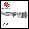 SACM-1000/1200E UV coating machine has experienced technical upgrades based on the original three-roller coating machine. By adopting the metering roller and frequency control, the UV-oil usage for different paper thickness can be adjusted through different linear velocity, and easy to operate. Meanwhile the fineness and smoothness of glazing paper surface can be changed fundamentally and without any orange peel veins, so make the glazed product achieve the best effect. Technical parameters: 1) Model: SACM-1000E, SACM-1200E 2) Max. paper width: 590x882mm, 787x1092mmm 3) Min. paper width: 340x406mm, 340x406mmm 4) Max. coating width (m/min): 950mm, 1150mm 5) Max. feed speed(m/min): 80, 80 6) Paper thickness: 80-600gsm, 80-600gsm7) Total power: 35KW, 35KW 7) Net weight: 5000KG, 5500KG8) Overall dimensions (L x W x H): 12,500x2,100x1,850mm, 12,500x2,300x1,850mm (coating machine,uv glazing machine,packaging machine,laminting machine,cold/hot machine)